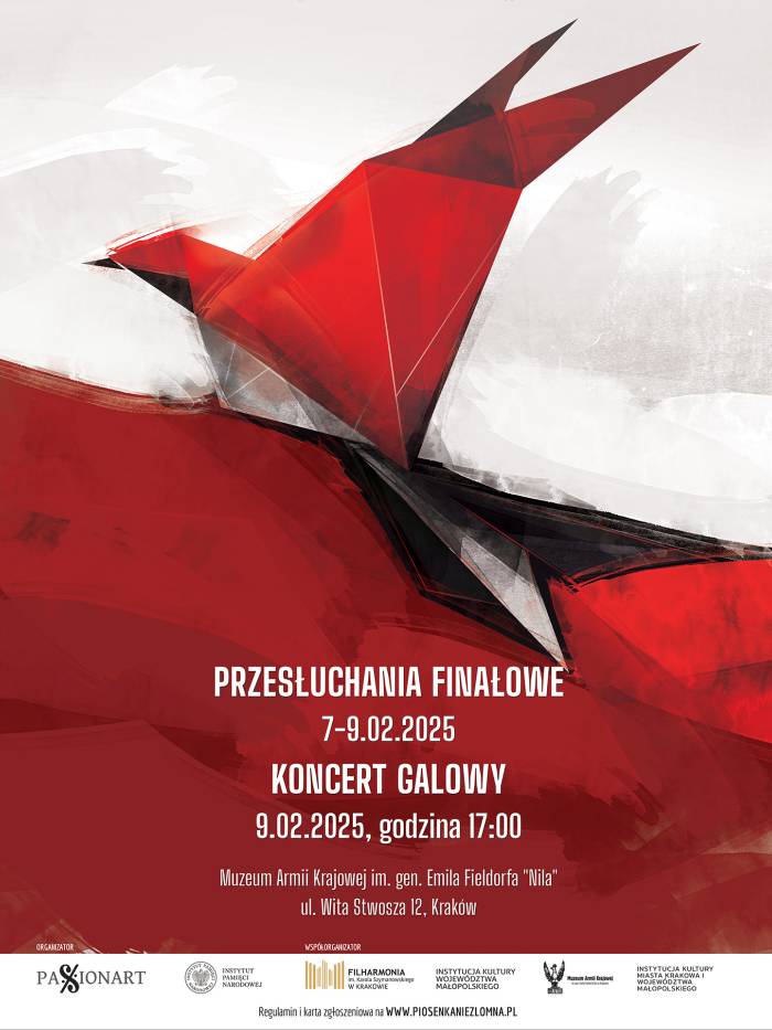W niedzielę 9 lutego 2025 r. o godz. 17 w Muzeum Armii Krajowej w Krakowie odbędzie się Gala Finałowa IX Festiwalu Piosenki Niezłomnej i Niepodległej im. Henryka Rasiewicza "Kima".