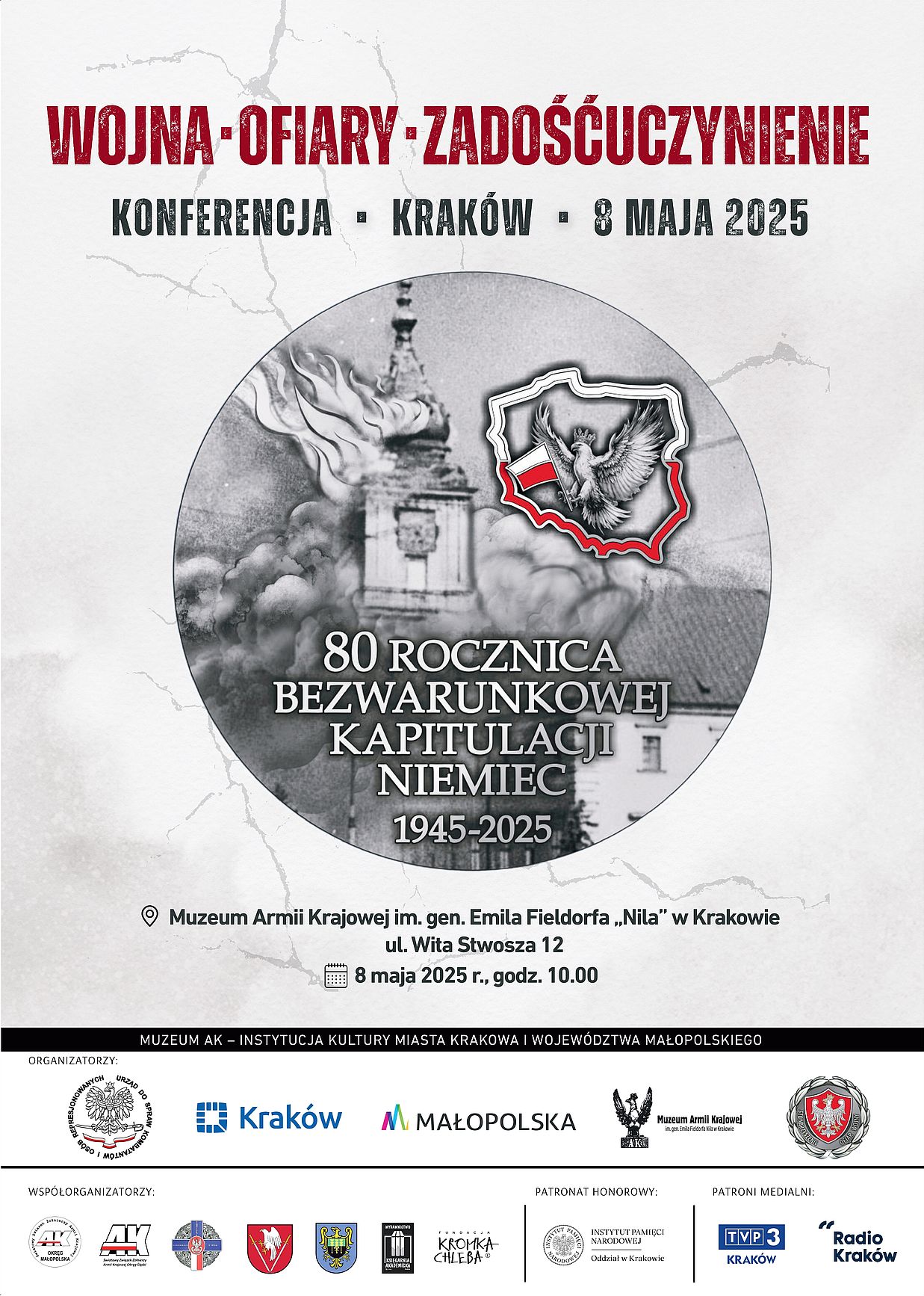 Konferencja odbędzie się w czwartek 8 maja 2025 r. w Muzeum Armii Krajowej im. gen. Emila Fieldorfa "Nila" przy ul. Wita Stwosza 12 w Krakowie.