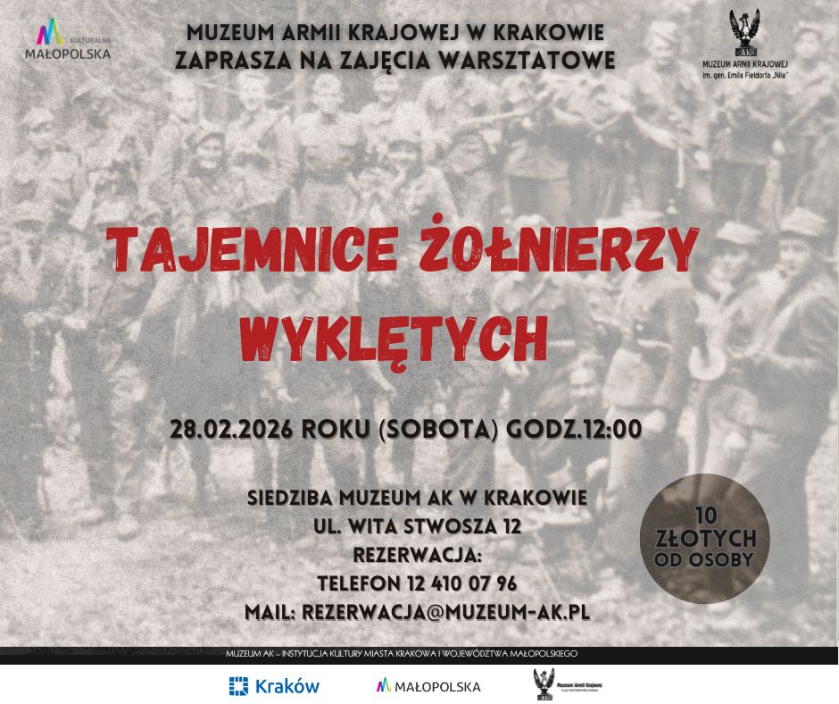 Muzeum Armii Krajowej zaprasza w sobotę 28 lutego 2026 r. o godz. 12 na zajęcia edukacyjne "Tajemnice Żołnierzy Wyklętych".