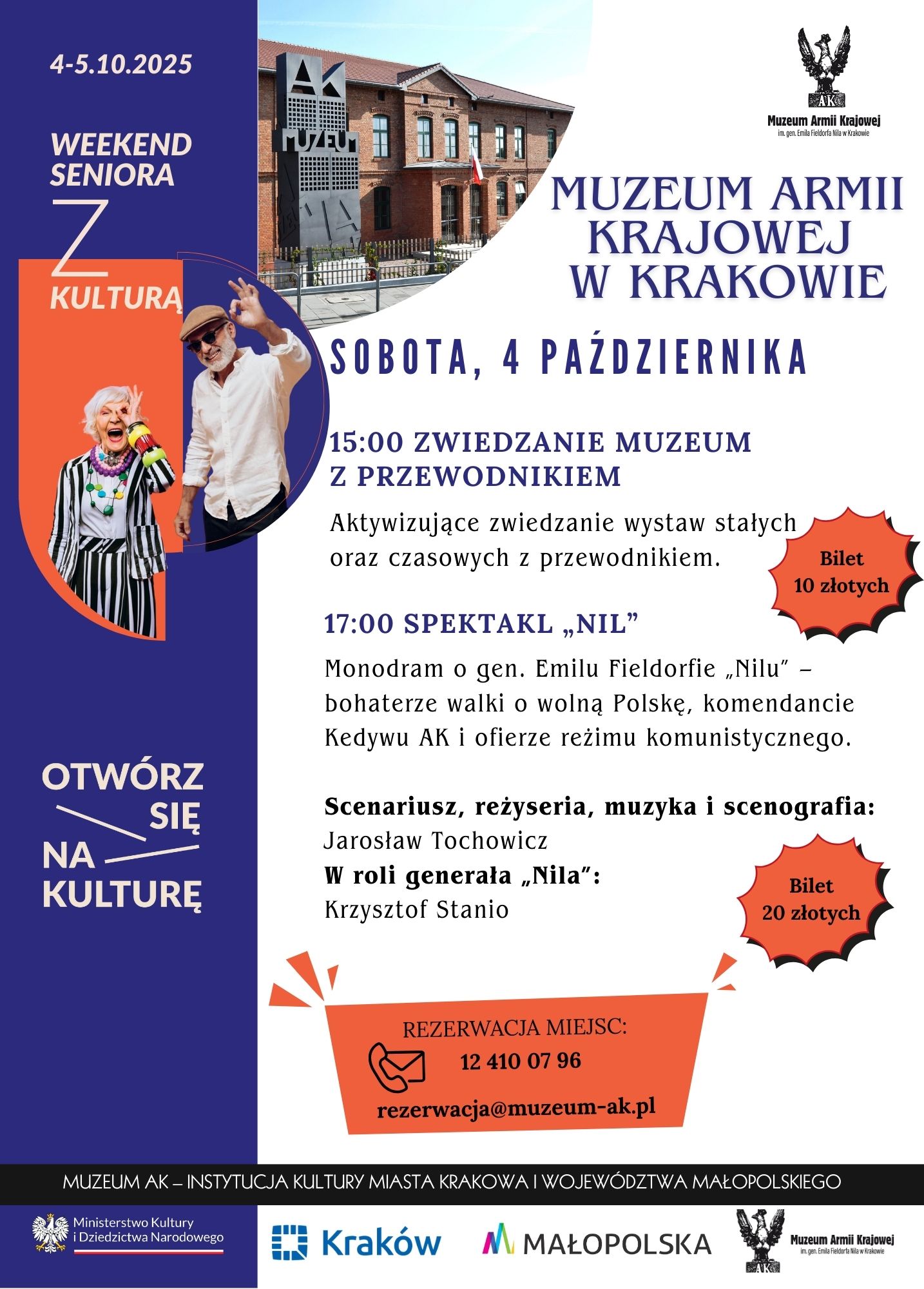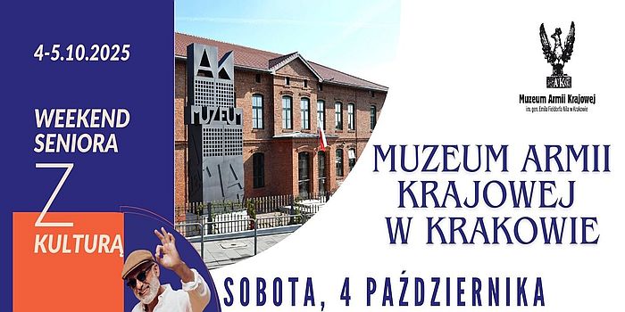Muzeum Armii Krajowej im. gen. Emila Fieldorfa "Nila" w Krakowie serdecznie zaprasza seniorów wraz z najbliższymi na specjalny program wydarzeń przygotowany z okazji kolejnej odsłony Weekendu Seniora z Kulturą.