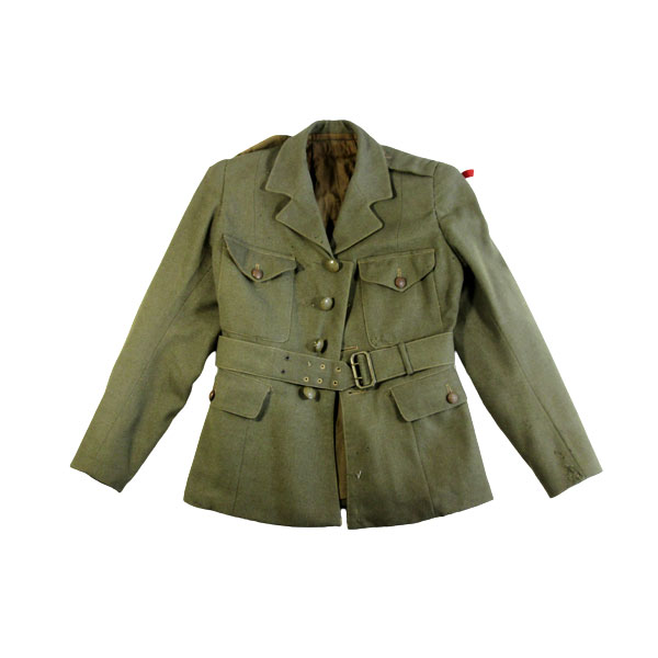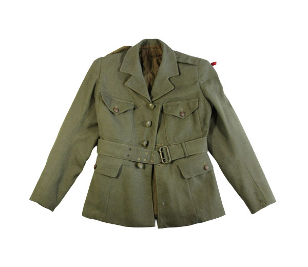Mundur Jadwigi Woś. Składa się z 10 obiektów inwentarzowych: beret męski (403); kurtka ATS 1941 Pattern, 1942 (404); spodnie cywilne (405); buty wysokie z cholewami (406); koszula (407); krawat dzianinowy (408); Warszawski Krzyż Powstańczy na wstążce (409); Krzyż Partyzancki na wstążce (410); Krzyż Armii Krajowej na wstążce (411); odznaka pamiątkowa Akcji Burza (412); Odznaka - Wyróżnienie "Za wkład pracy w ŚZŻAK". Kurtka ATS 1941 Pattern, 1942: zapinana na cztery brytyjskie guziki; na prawym rękawie oznaka rozpoznawcza POLAND oraz oznaka 8 Armii Brytyjskiej; na lewym rękawie fragment oznaki [POL]AND i oznaka 2 KP. Oznaki wykonane z tworzywa sztucznego.
