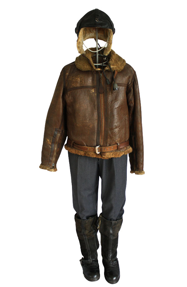Ubranie amerykańskiego pilota. Składa się z 4 obiektów inwentarzowych: hełmofon pilota typu amerykańskiego, 1953 (430); kurtka skórzana pilota por. pil. Tadeusza Arabskiego (431); spodnie granatowe pilota (432); buty pilota skórzano-zamszowe ocieplane kożuchem por. pil. Tadeusza Arabskiego (433). Kurtka skórzana pilota por.pil. Tadeusza Arabskiego: Skórzana kurtka brązowa. Kołnierz futrzany, zakończona futrem, w środku wyszywana futrem. Zapinana na zamek. Zamki na rękawach wszyte do wysokości łokcia. Rękawy zakończone futrem. U dołu kurtki szlufki na pasek. Pasek z tego samego materiału co kurtka, jedno-bolcowy. Skóra zniszczona, liczne pęknięcia.