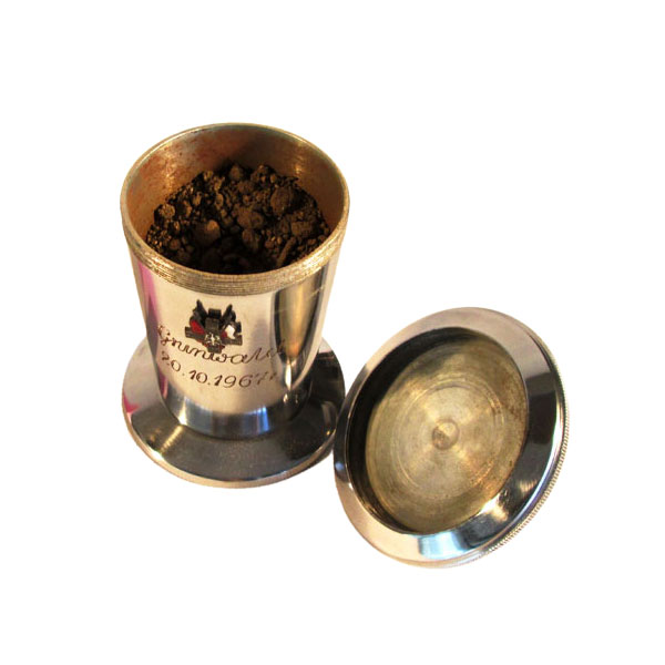 Urna z ziemią z pod Grunwaldu i miniaturą odznaki ZBoWiD