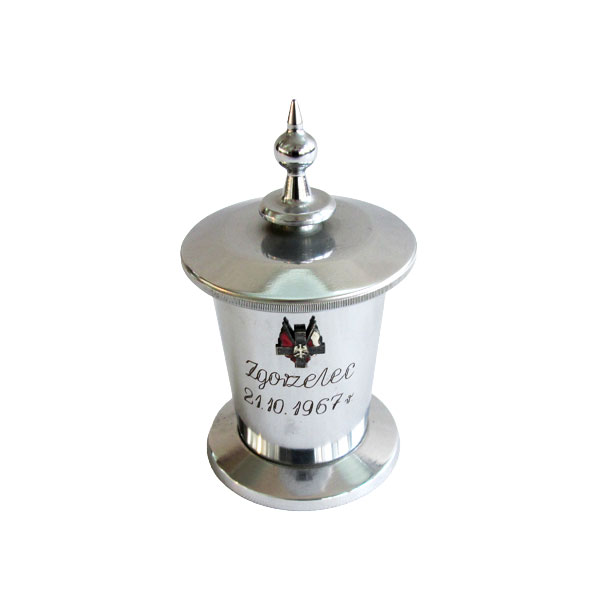 Urna z ziemią z pola bitwy pod Zgorzelcem i miniaturą odznaki ZBoWiD, 21.10.1967.