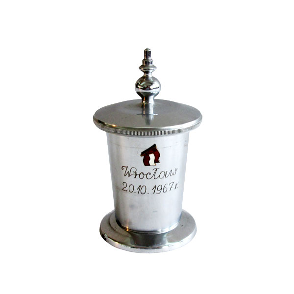 Urna z ziemią z Wrocławia i miniaturą odznaki TPPR, 20.10.1967