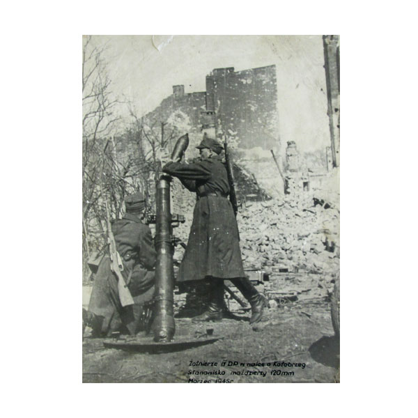 Żołnierze IV D.P. w walce o Kołobrzeg. Stanowisko moździerzy 120 mm