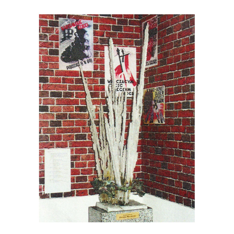 Rzeźba inspirowana wybuchem Powstania Warszawskiego 1944 r. Kompozycja odlanych elementów z duraluminium i brązu, patynowana na podstawie z brązu. Cokół rzeźby z granitu strzegomskiego polerowanego jednopłaszczyznowo.