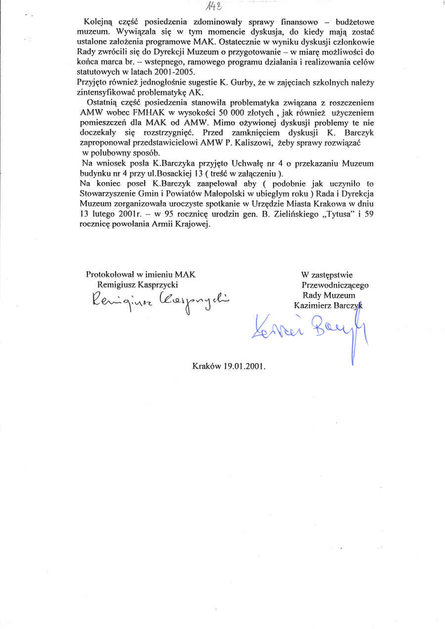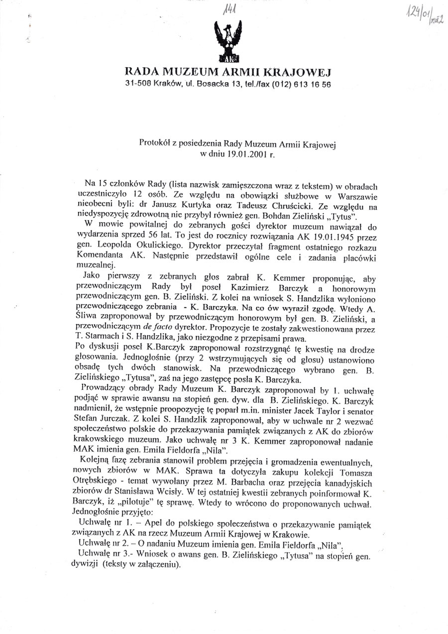 Posiedzenia Rady Muzeum Armii Krajowej w dniu 19.01.2001 r.