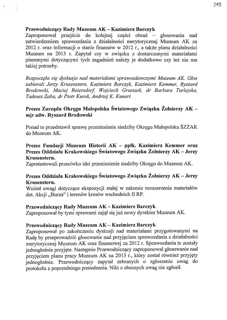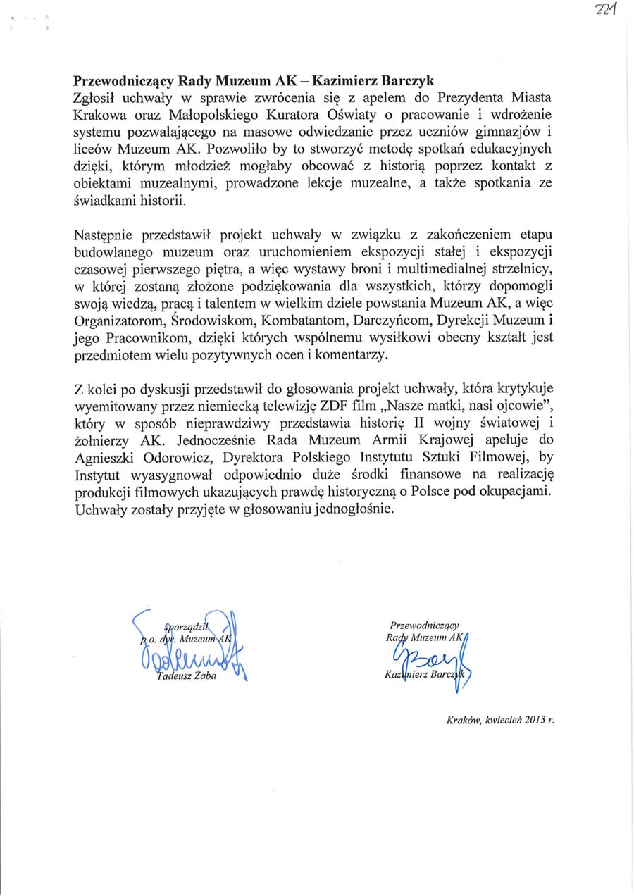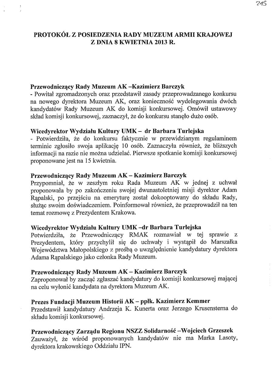 Posiedzenie Rady Muzeum AK w dniu 8.04.2013 r.