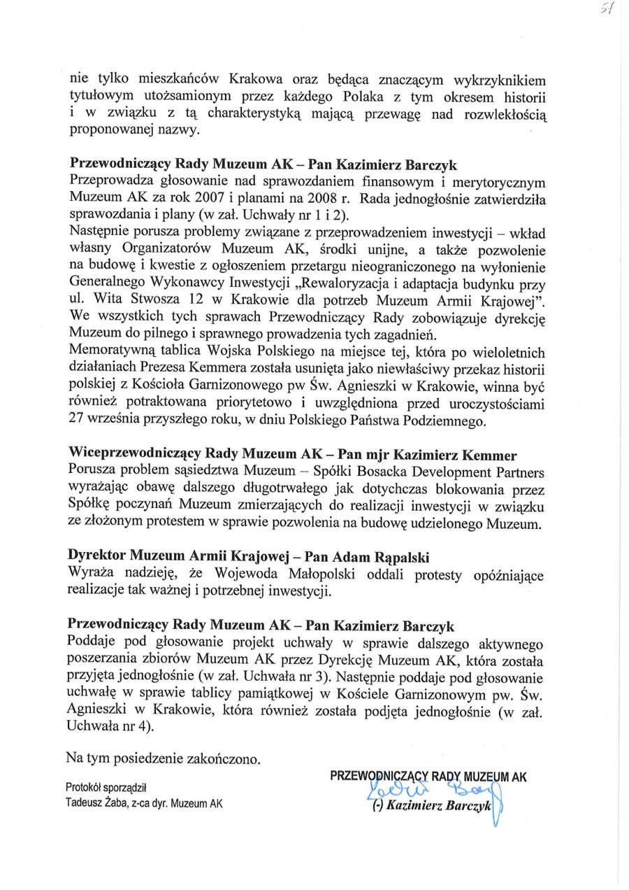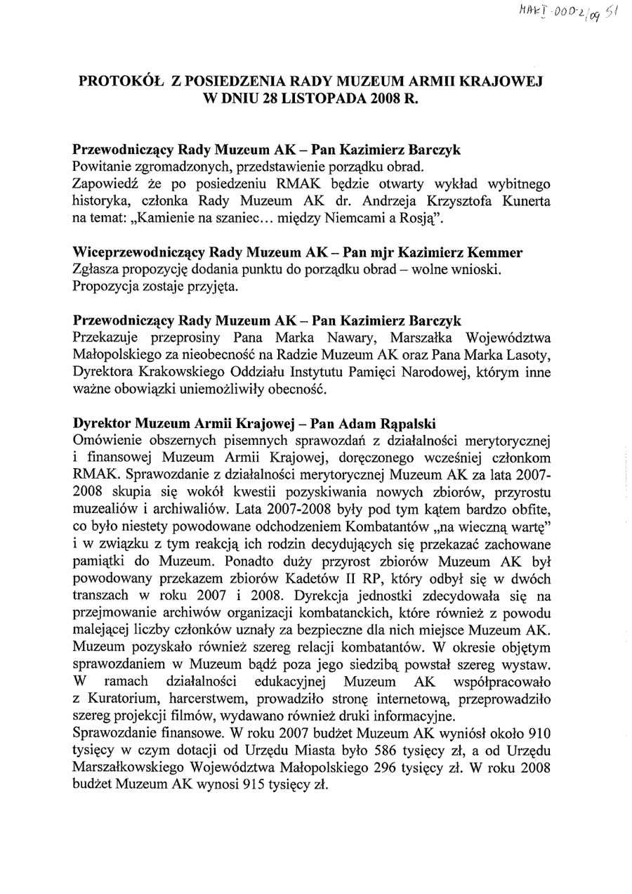 Posiedzenie Rady Muzeum w dniu AK w dniu 28.11.2008 r.