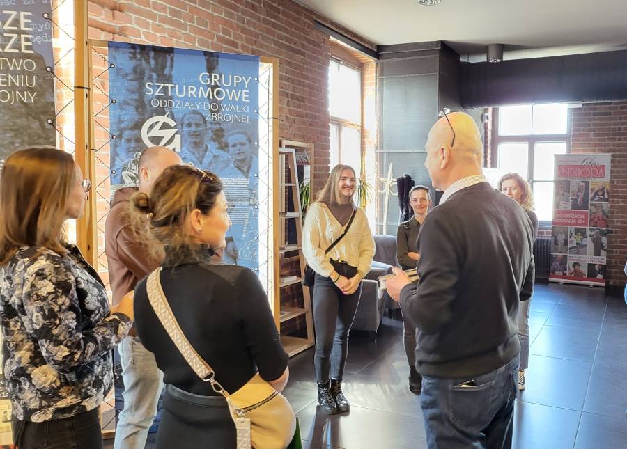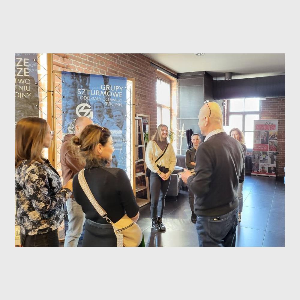 Oprowadził ich po niej nasz kolega z Sekcji Edukacji Piotr Fugiel. Opowiedział obszernie m.in. o historii budynku Muzeum w kontekście Twierdzy Kraków, kampanii wrześniowej, niemieckich i sowieckich prześladowaniach Polaków, obozach jenieckich oraz oczywiście o Armii Krajowej i Polskim Państwie Podziemnym.