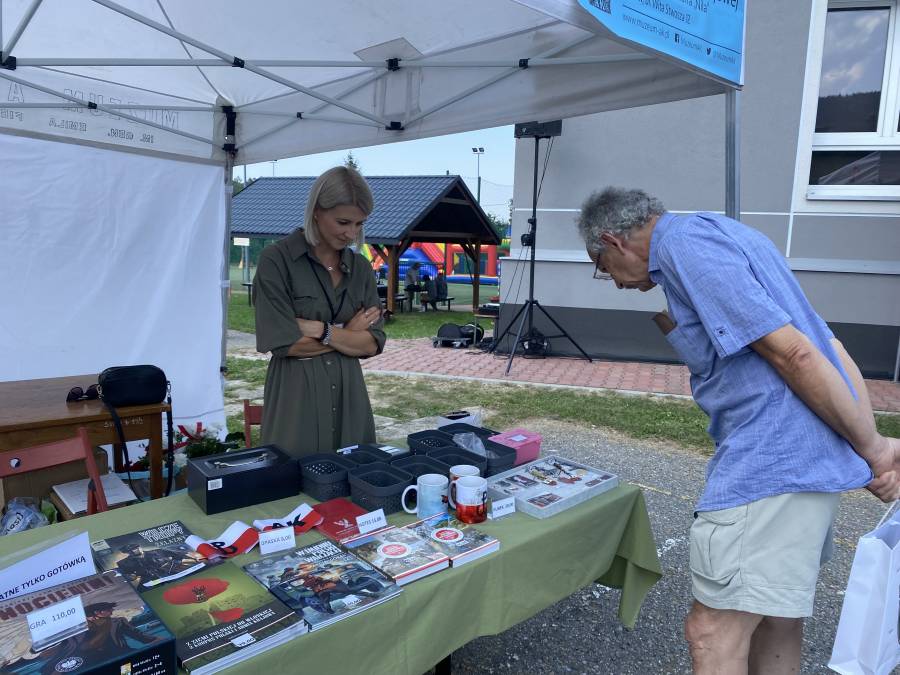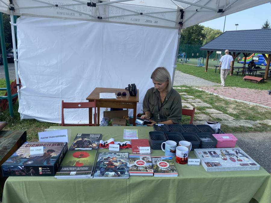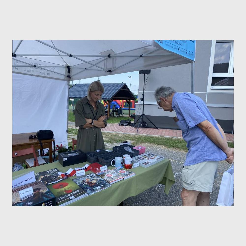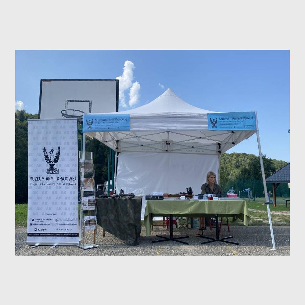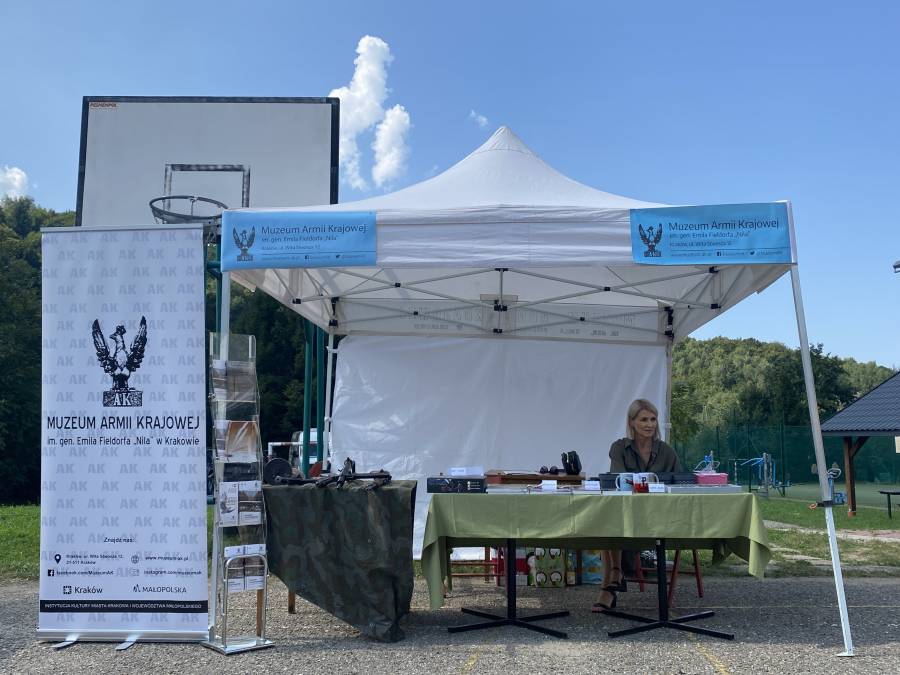 Natomiast podczas pikniku przy szkole podstawowej w Porębie koło Myślenic prezentowało się stoisko Muzeum. Można było na nim otrzymać ulotki z ofertą naszej placówki, nabyć gadżety z muzealnego sklepiku (powodzeniem cieszyły się breloki, przypinki patriotyczne, biało-czerwone opaski i koszulki) oraz zapoznać z działalnością Muzeum.