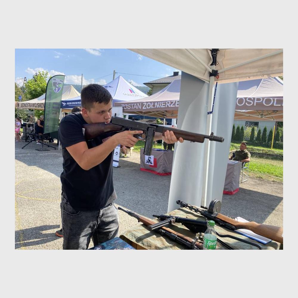 Prezentowaliśmy także egzemplarze historycznej broni z czasów II wojny światowej ze zbiorów naszej placówki. Do ręki można było wziąć pistolety maszynowe sten, pepesza i thompson oraz karabin mauser.
