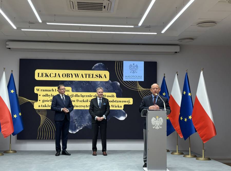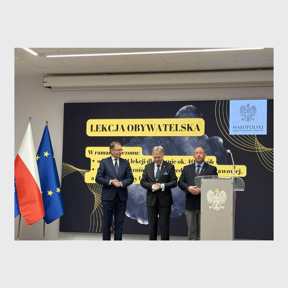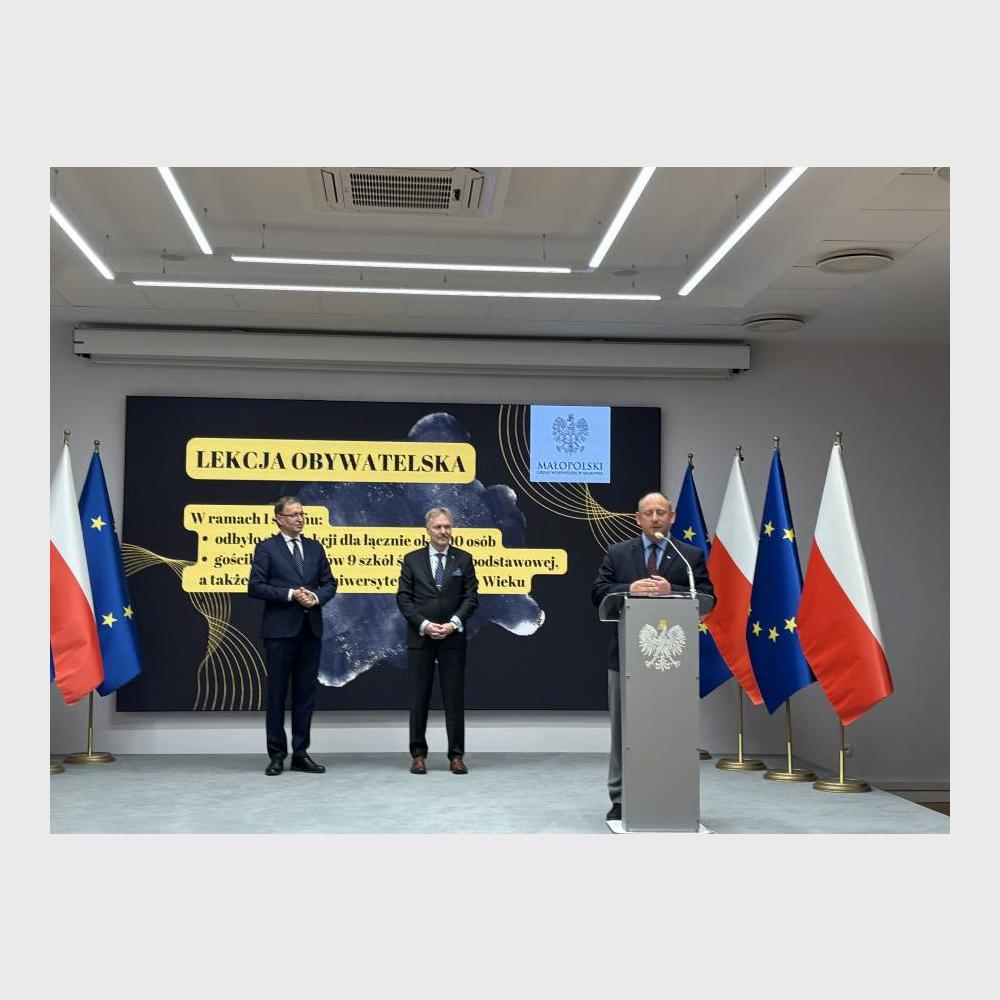 6 października 2025 r. w Małopolskim Urzędzie Wojewódzkim w Krakowie odbyła się konferencja inaugurująca nowy sezon projektu "Lekcje obywatelskie" - inicjatywy edukacyjnej organizowanej przez MUW, której celem jest kształtowanie postaw prospołecznych, rozwijanie świadomości obywatelskiej i zachęcanie młodzieży do aktywnego uczestnictwa w życiu publicznym.