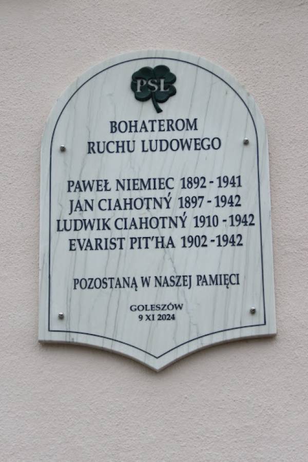 Pierwszym przystankiem była miejscowość Goleszów koło Cieszyna, gdzie złożono kwiaty i zapalono znicze pod tablicą upamiętniającą Pawła Niemca, Jana Ciahotnego, Ludwika Ciahotnego i Evarysta Pithę - działaczy ruchu ludowego i żołnierzy Armii Krajowej zamordowanych przez Niemców w 1942 r.