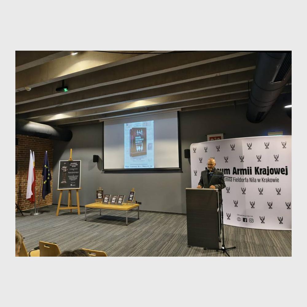 Głos zabrał także sam prof. Krzysztof Krajewski-Siuda. Opowiedział o genezie wystawy, wydarzeniach, jakie zainspirowały go do jej stworzenia, współpracy z Muzeum AK. - Początkowo miała to być niewielka czasowa ekspozycja. Ale podczas tworzenia rozrosła się w coś znacznie większego i znaczącego - mówił. Przybliżył dalsze losy ekspozycji, która po prezentacji w Muzeum AK pokazywana była w Muzeum Martyrologii Wsi Polskich w Michniowie oraz w Bibliotece Miejskiej w Końskich.