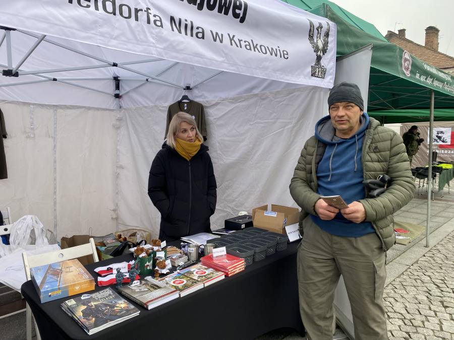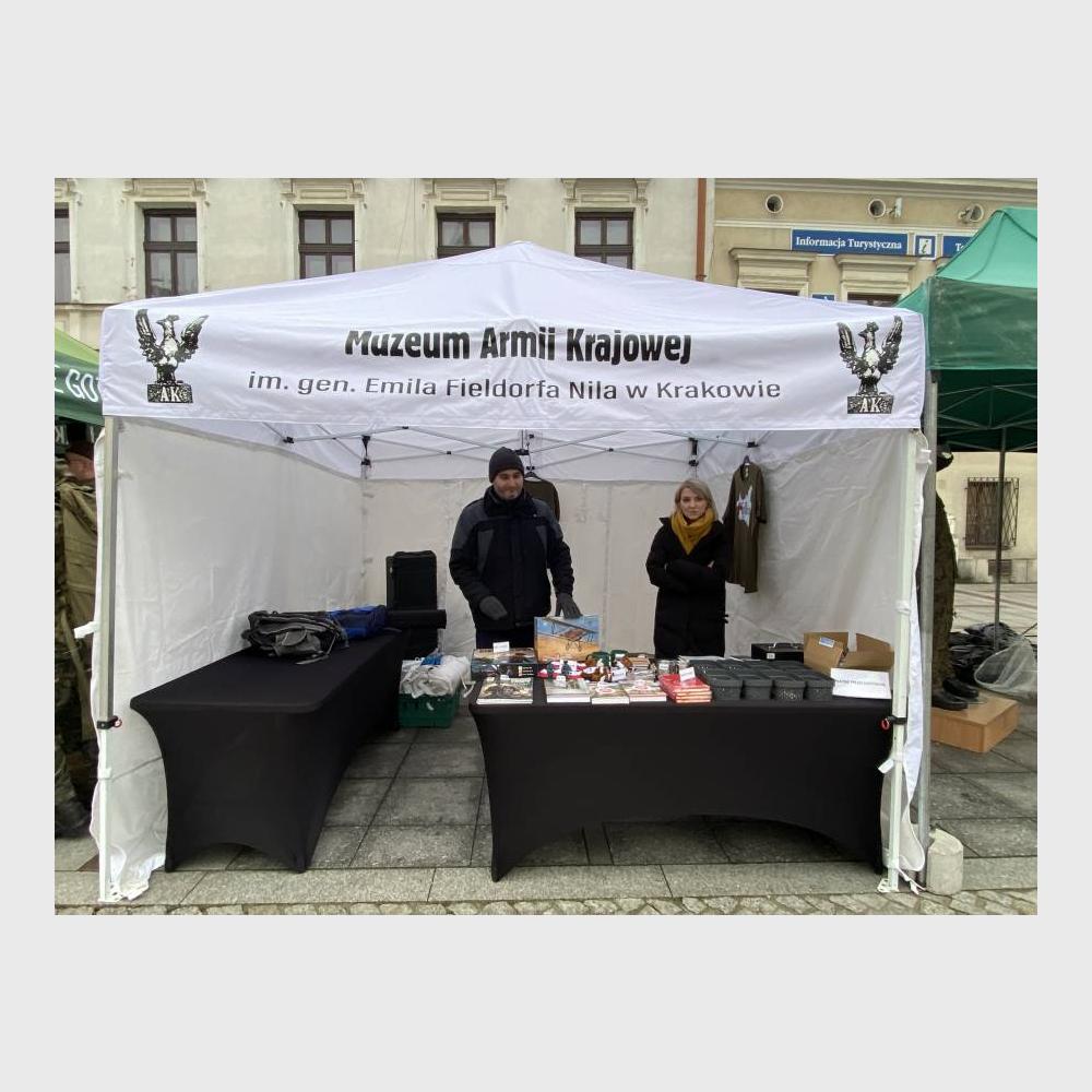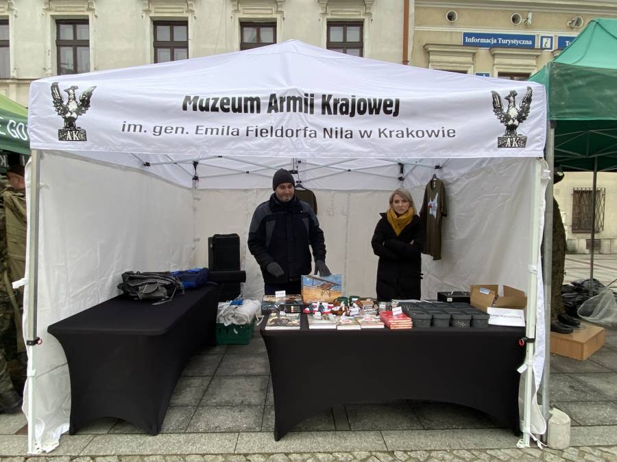 Stoisko naszego Muzeum było jednym z zaproszonych na towarzyszący przysiędze piknik wojskowy. Oferowaliśmy na nim muzealne wydawnictwa oraz gadżety z muzealnego sklepiku. Zainteresowaniem cieszyły się m.in. breloki z logotypem Muzeum, orzełek Armii Krajowej i koszulki z okazji 80. rocznicy Akcji "Burza". Wśród kupujących było szczególnie wielu żołnierzy WOT.
