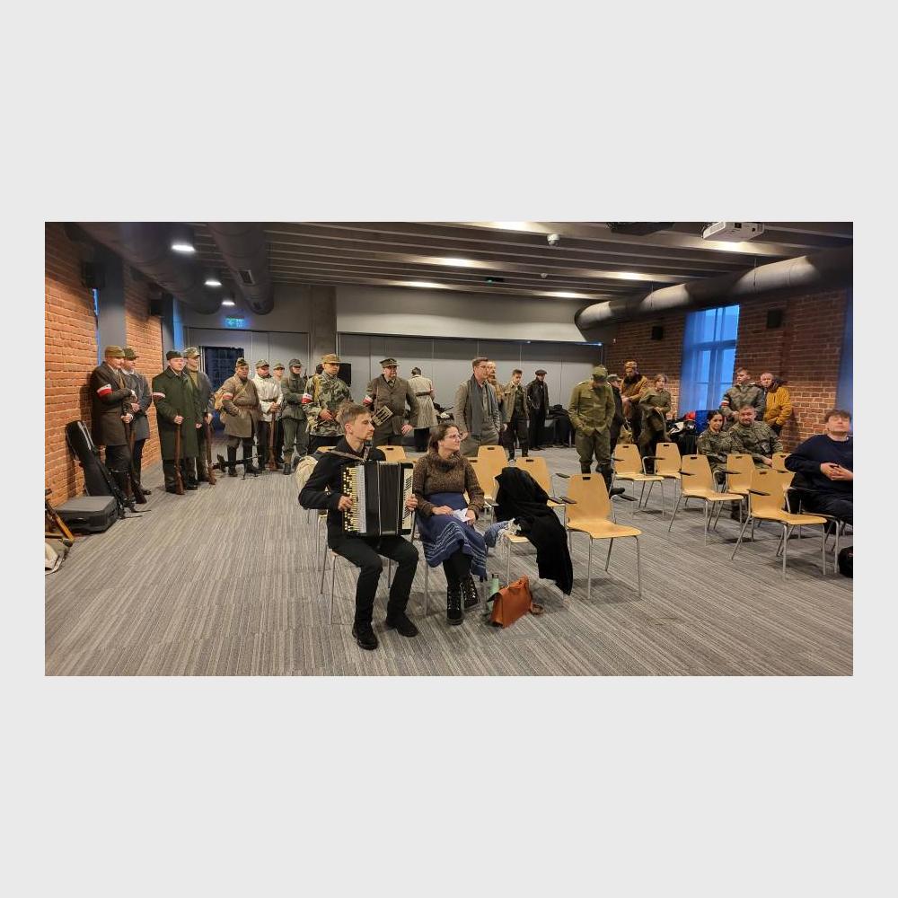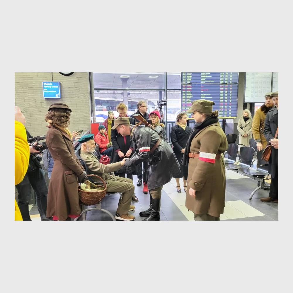 W poczekalni MDA zorganizowaliśmy wydarzenie typu flash mob. Przed oczami czekających na odjazd pasażerów pojawił się nagle trzyosobowy zespół muzyczny w strojach z okresu okupacji. Zespół zaintonował znaną partyzancką piosenkę "Hej chłopcy, bagnet na broń". Po chwili do muzyków dołączyli rekonstruktorzy w partyzanckich mundurach, z bronią i biało-czerwonymi opaskami na rękawach, a także żołnierze 11. Małopolskiej Brygady Obrony Terytorialnej. Wspólnie kontynuowano śpiewanie.