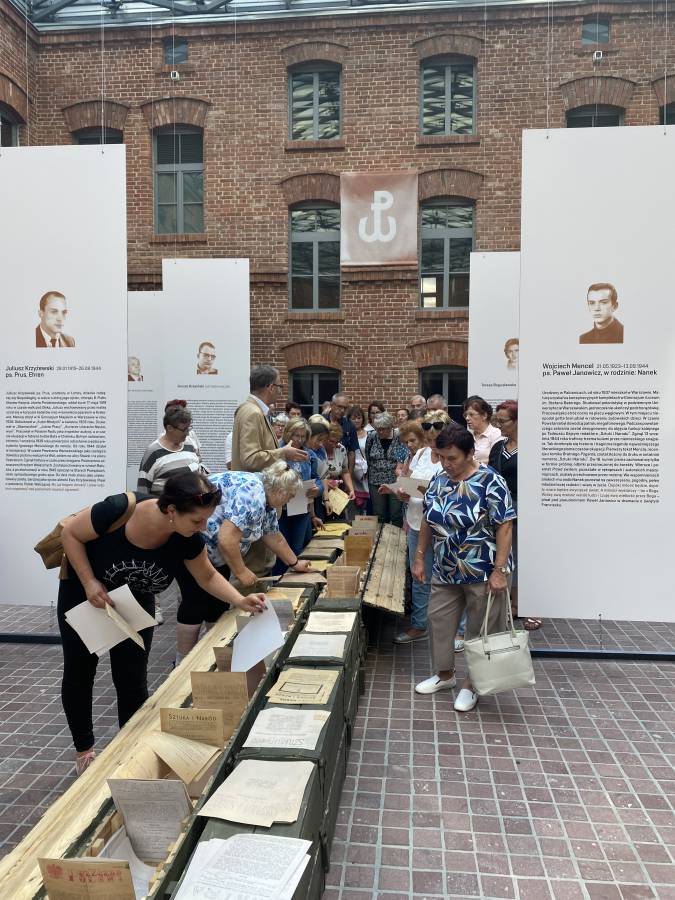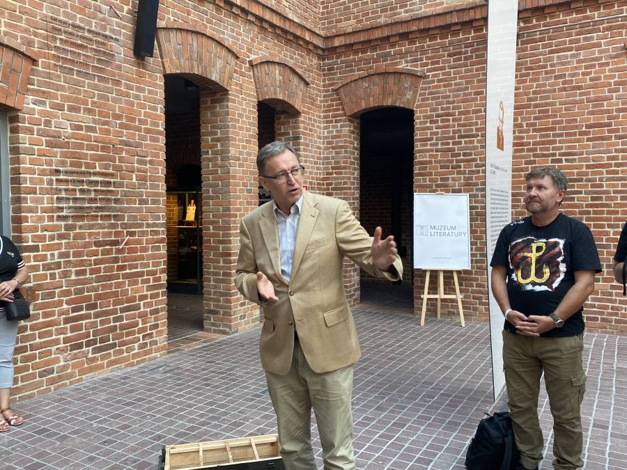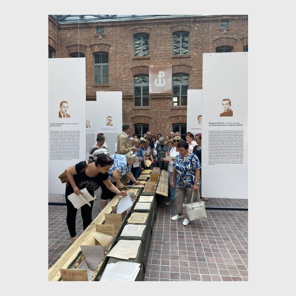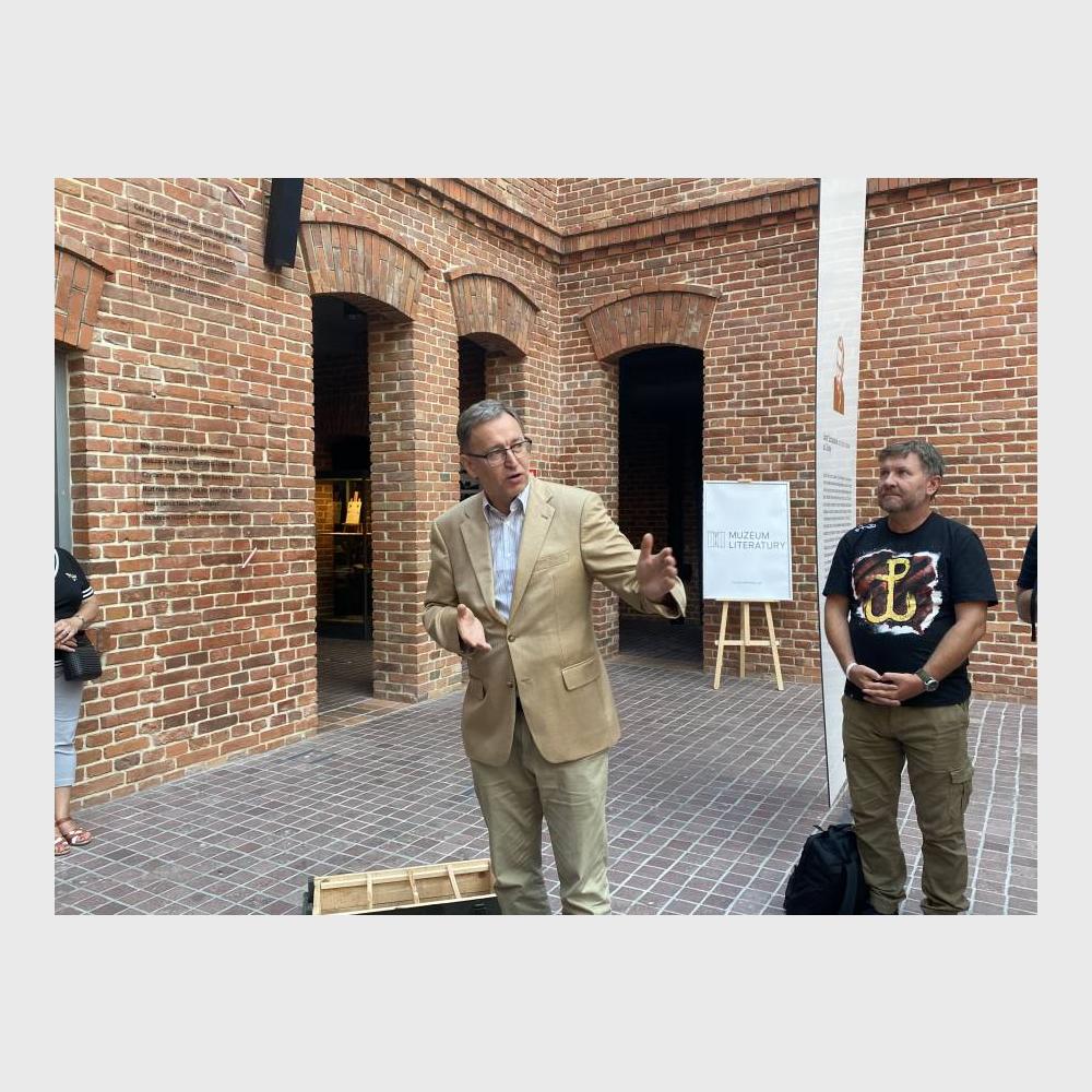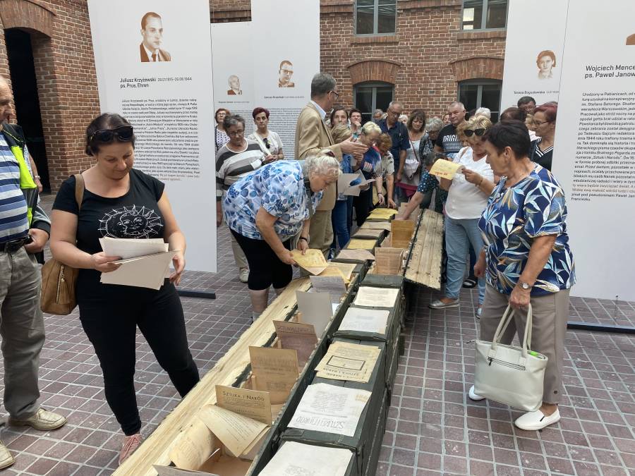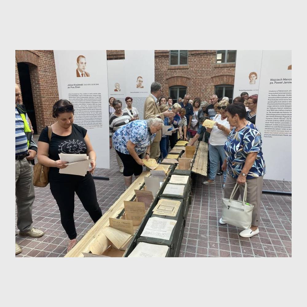 Goście obejrzeli także prezentowaną na dziedzińcu ekspozycję czasową "Poeci Podziemia. Słowo i czyn". Szczególną uwagę zwrócili na tych jej bohaterów, którzy uczestniczyli w Powstaniu Warszawskim.
