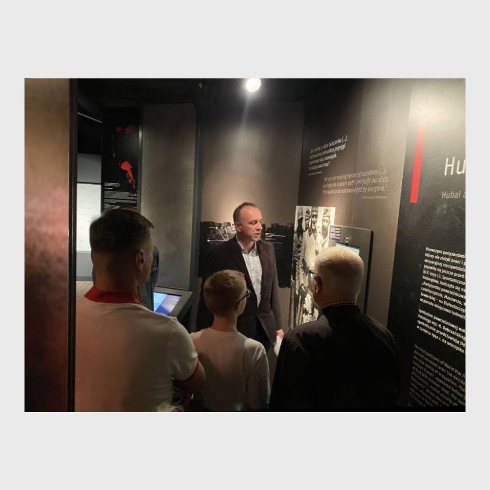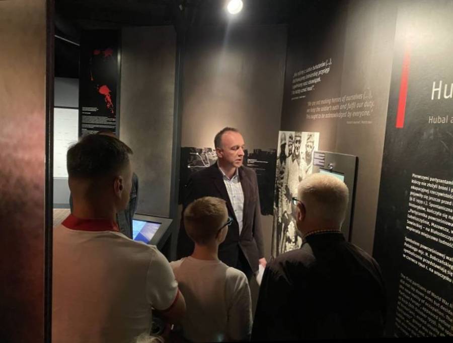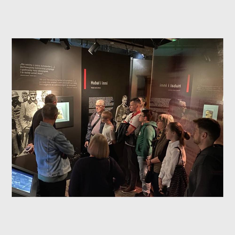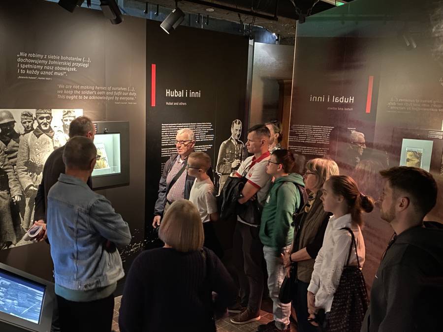 Najpierw dr Piotr Wierzbicki z Działu Upowszechniania MAK oprowadził publiczność po tych fragmentach wystawy głównej, na których eksponowane są pamiątki po majorze. Opowiedział o oryginale Dziennika Oddziału Wydzielonego Wojska Polskiego, medaliku należącym do przyjaciela "Hubala" Tadeusza Wyrwy "Furgalskiego" i jego partyzanckim kożuchu oraz o kolekcji fotografii Hubalczyków znajdującej się w naszych zbiorach.
