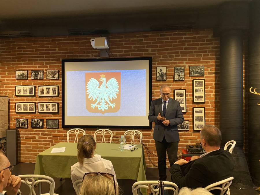 Następnie w sali kawiarnianej Muzeum dr Wierzbicki wygłosił ilustrowaną fotografiami prelekcję o Dzienniku, jego niezwykłych wojennych i powojennych losach oraz postaci samego Henryka Dobrzańskiego.