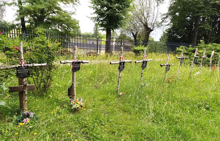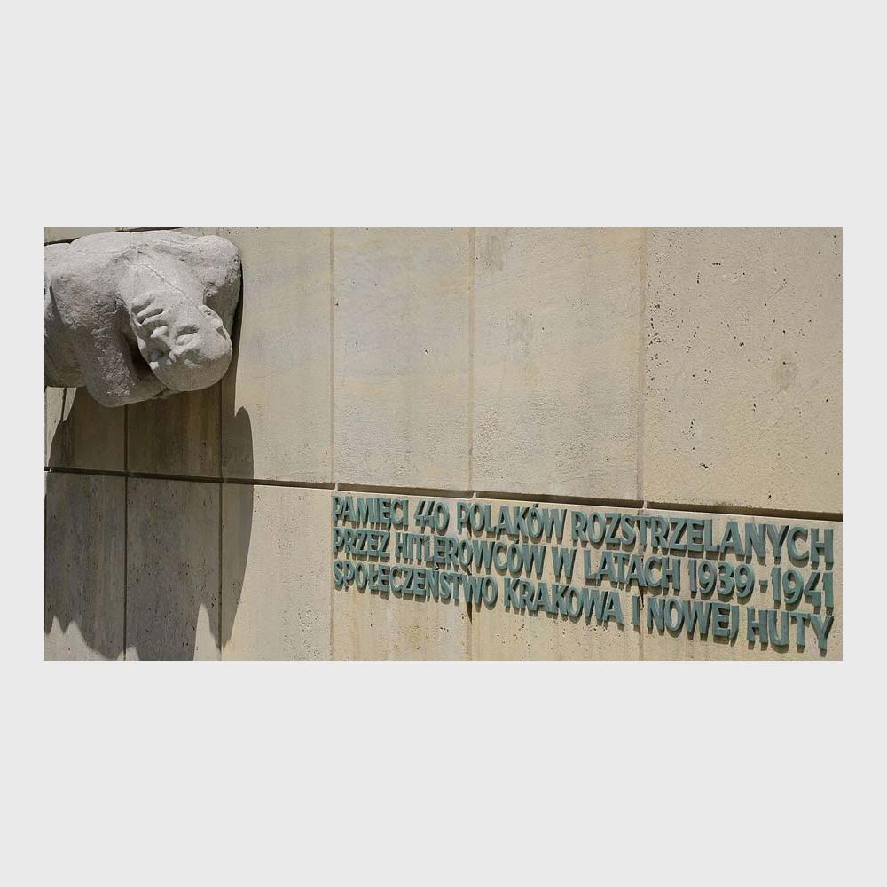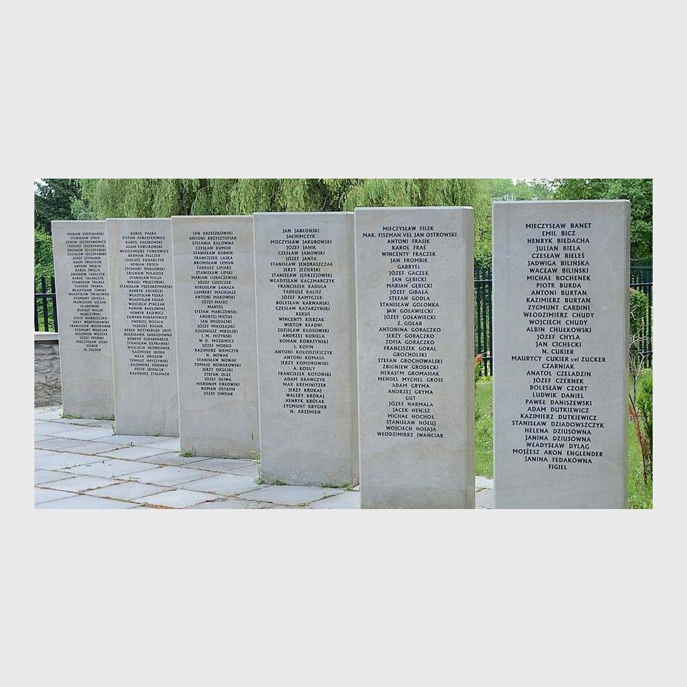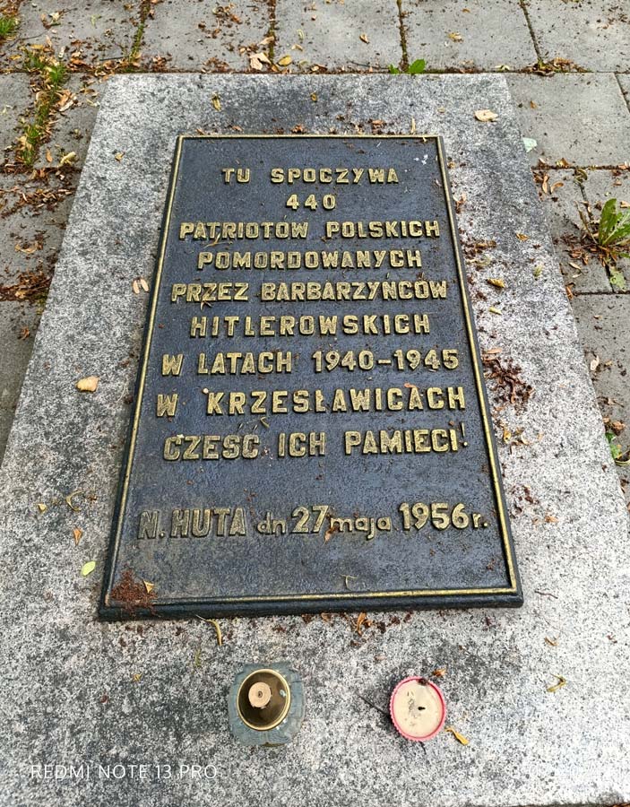 Na fot. m.in. Kanoniera czołowa - miejsce straceń ze śladami po kulach, miejsce pochówku oraz pomnik ofiar egzekucji w Forcie Krzesławice.
