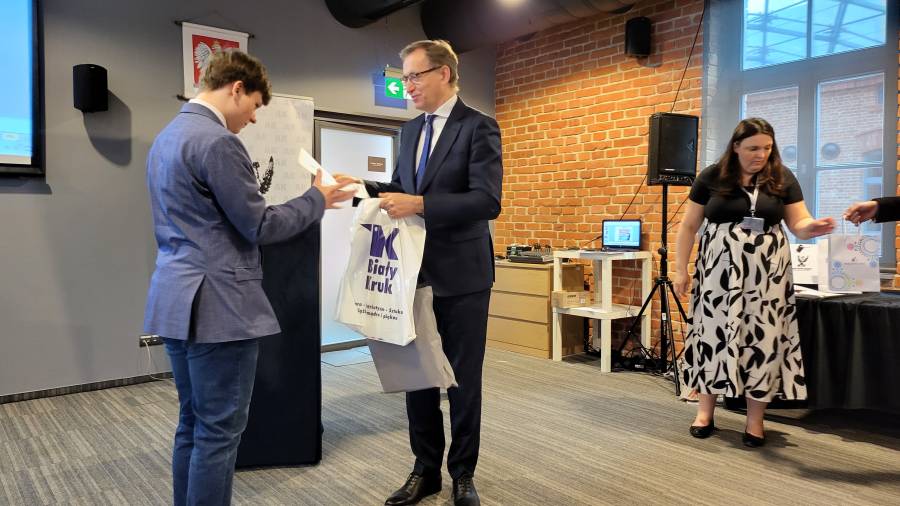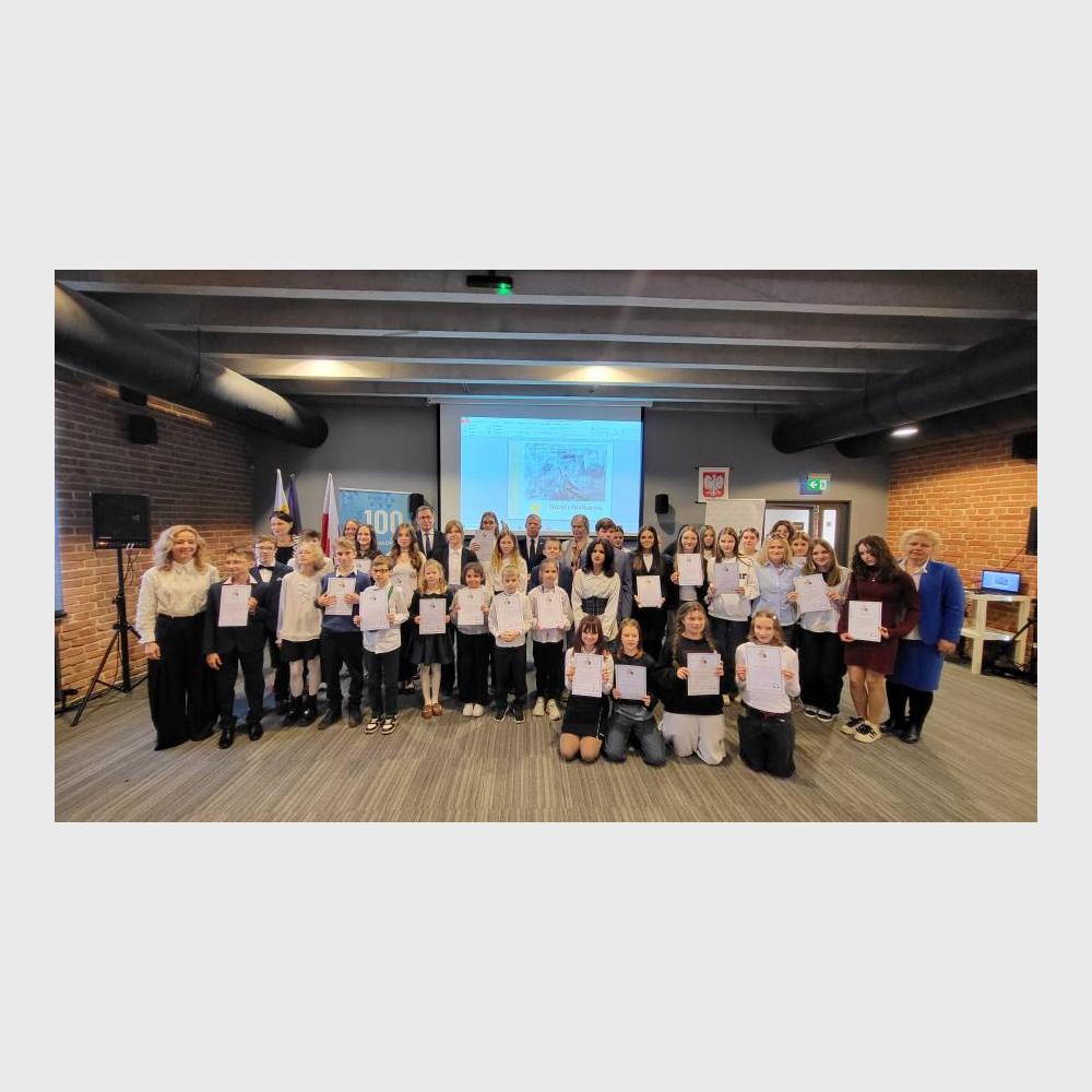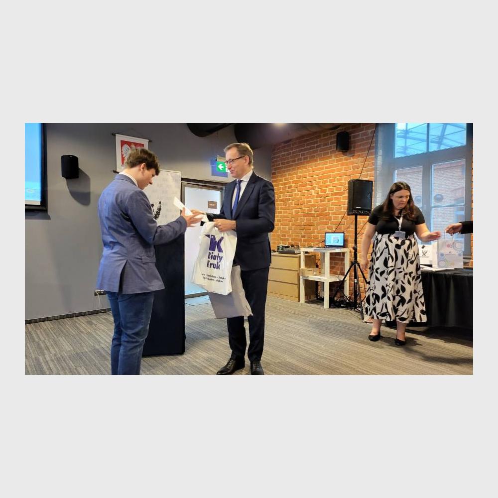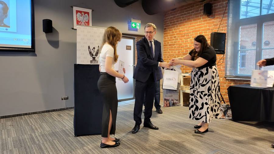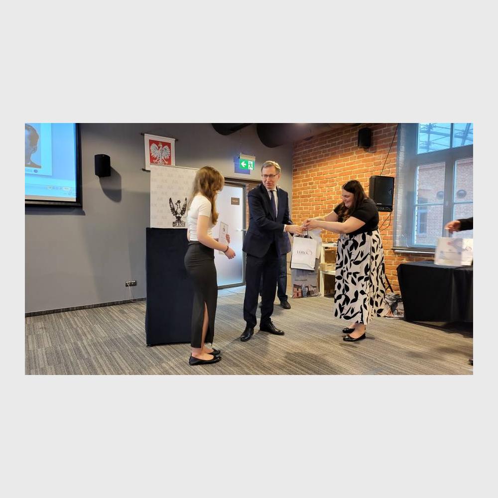 Następnie organizatorzy - dyrektor Jarosław Szarek, Katarzyna Mazur i Mariusz Jabłoński - wręczyli laureatom i wyróżnionym nagrody i upominki. Zostały one ufundowane przez: Dzielnicę II Grzegórzki, Urząd Marszałkowski Województwa Małopolskiego, Muzeum AK, Ośrodek Edukacji Obywatelskiej, wydawnictwo Biały Kruk oraz firmę Lobos. Upominki otrzymali także szkolni opiekunowie uczniów.