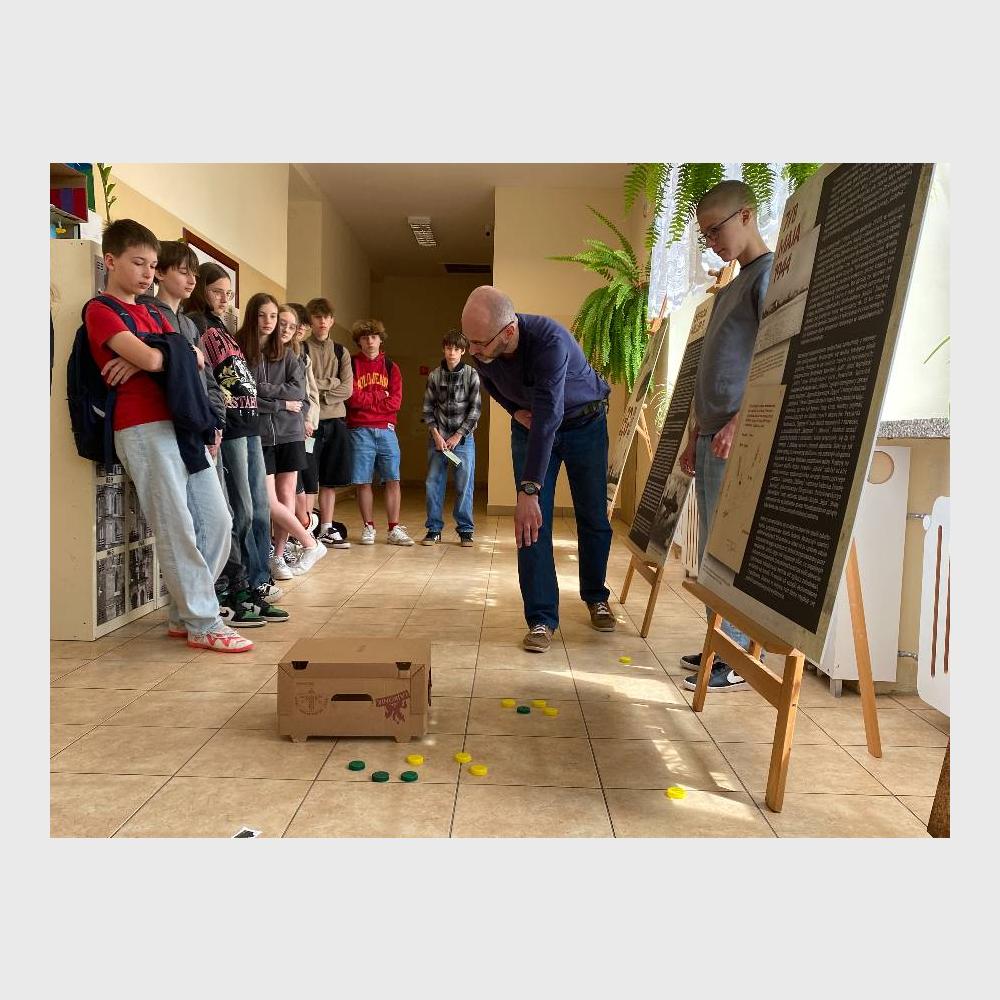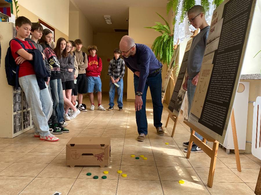 Również w środę 8 maja pracownicy Muzeum AK odwiedzili wspomnianą Szkołę Podstawową nr 156 im. kard. Adama Stefana Sapiehy przy ul. Centralnej. Przeprowadzili tam prelekcje i warsztaty dla uczniów, podczas których opowiadali o cichociemnych i opisywali przebieg tragicznego starcia w Łęgu.