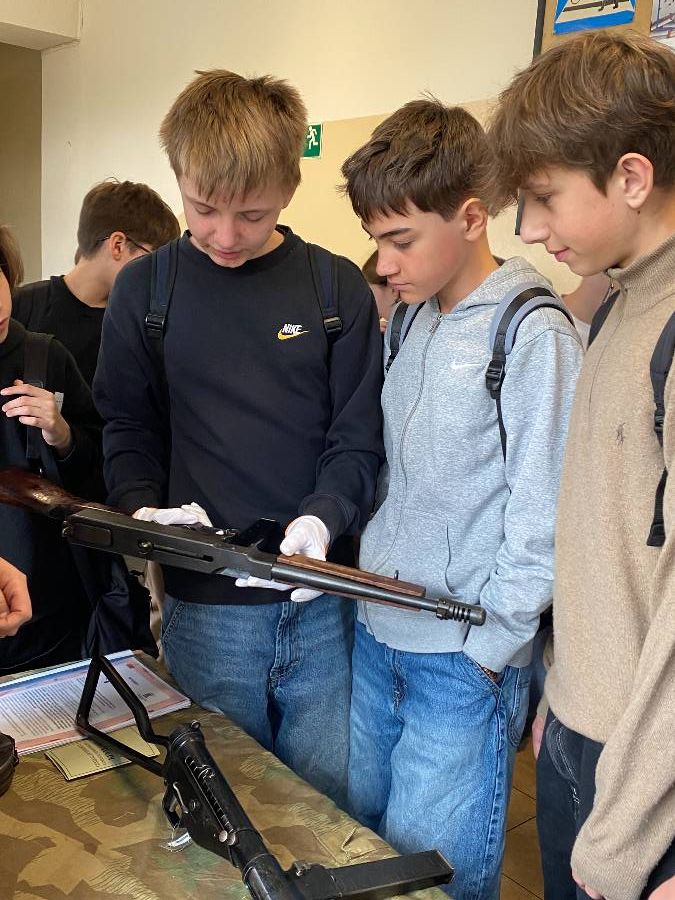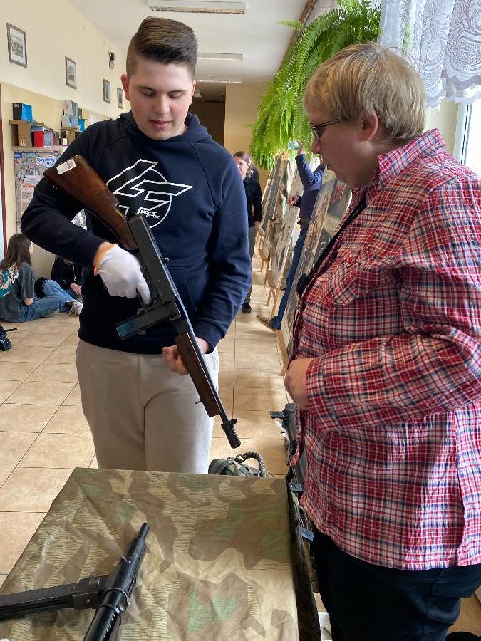 Uczniowie mogli też obejrzeć przygotowaną przez Muzeum wystawę planszową pt. "Łęg 08.05.44", a także zapoznać się z egzemplarzami broni z czasów wojny pochodzącymi ze zbiorów MAK. Wystawa prezentowana będzie przez jakiś czas w Szkole nr 156, potem trafi do innych placówek edukacyjnych na terenie Małopolski.