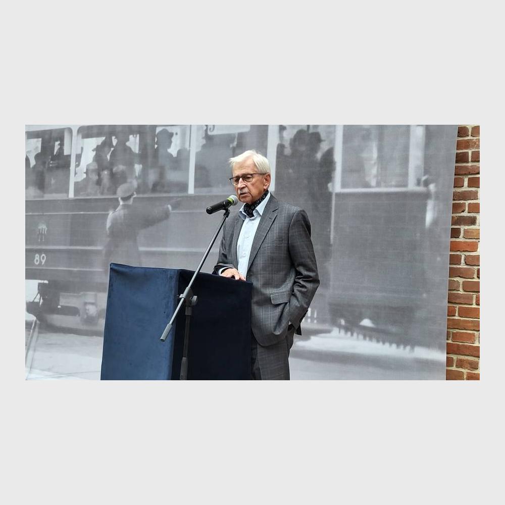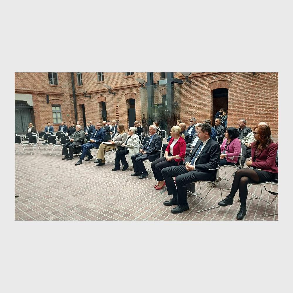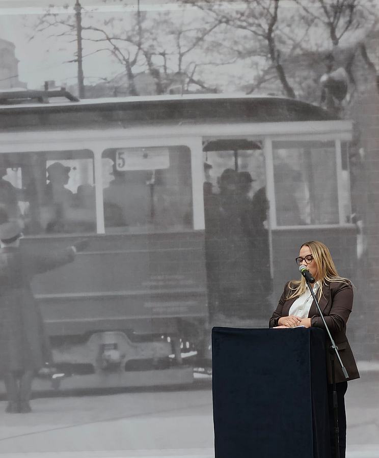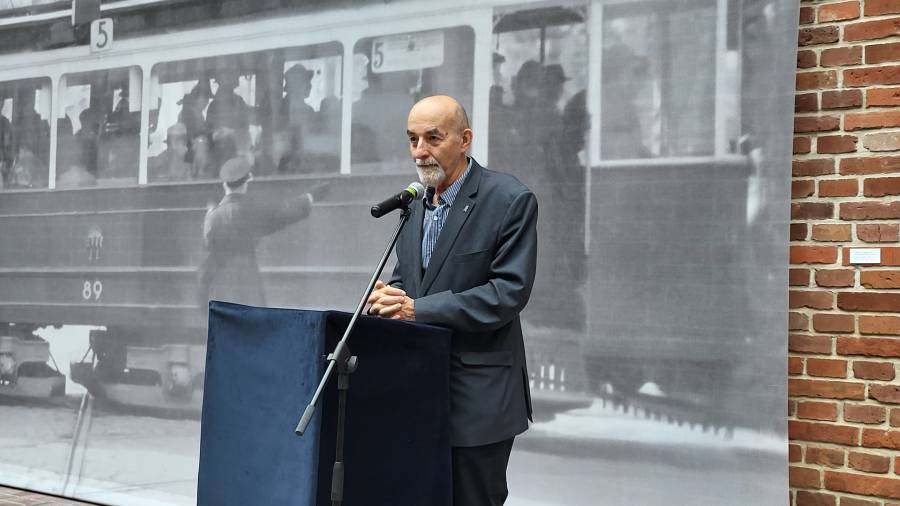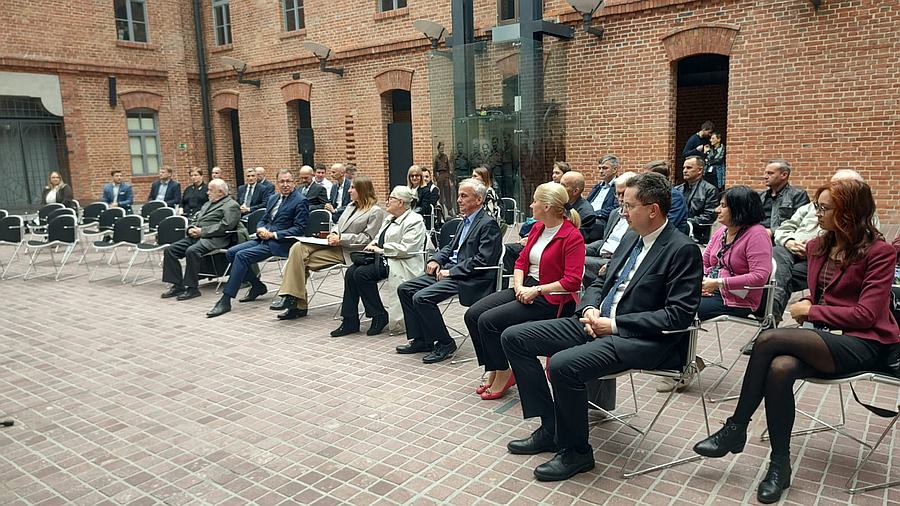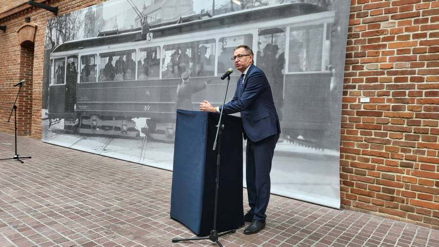 Na muzealnym dziedzińcu przed dużych rozmiarów bannerem ze zdjęciem krakowskiego tramwaju z 1941 r. zasiedli zaproszeni goście. Byli wśród nich członkowie władz Miejskiego Przedsiębiorstwa Komunikacyjnego w Krakowie, krewni bohaterów wystawy, dawni i byli pracownicy MPK, a także autorzy ekspozycji.