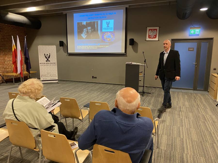 Prelegent opowiadał też o pamiątkach po gen. Fieldorfie znajdujących się w zbiorach naszej placówki. Dzięki życzliwości krewnych generała "Nila" do Muzeum AK trafiły m.in. listy pisane do siebie przez Janinę i Emil, szkolne zeszyty ich córki, a także szachy, taboret i młynek do kawy używane przez generała oraz różaniec i krzyż, które przywiózł w 1940 r. do okupowanej Polski z Jerozolimy. Eksponaty te już niebawem znajdą się na nowej ekspozycji stałej poświęconej patronowi Muzeum, której otwarcie odbędzie się 25 marca.