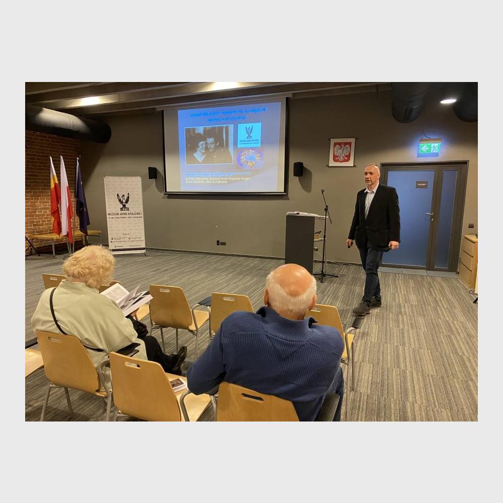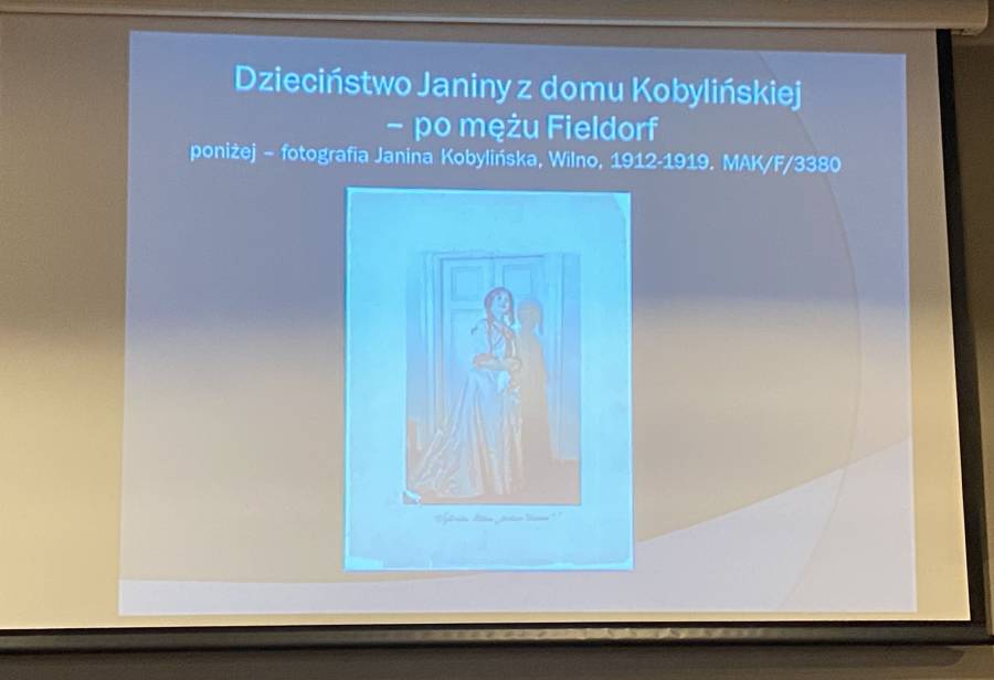 Dr Wierzbicki zilustrował swój wykład licznymi fotografiami archiwalnymi przedstawiającymi rodzinę Fieldorfów. Zdjęcia pochodziły ze zbiorów Muzeum Armii Krajowej, a trafiły do nich przekazane przez krewnych generała.