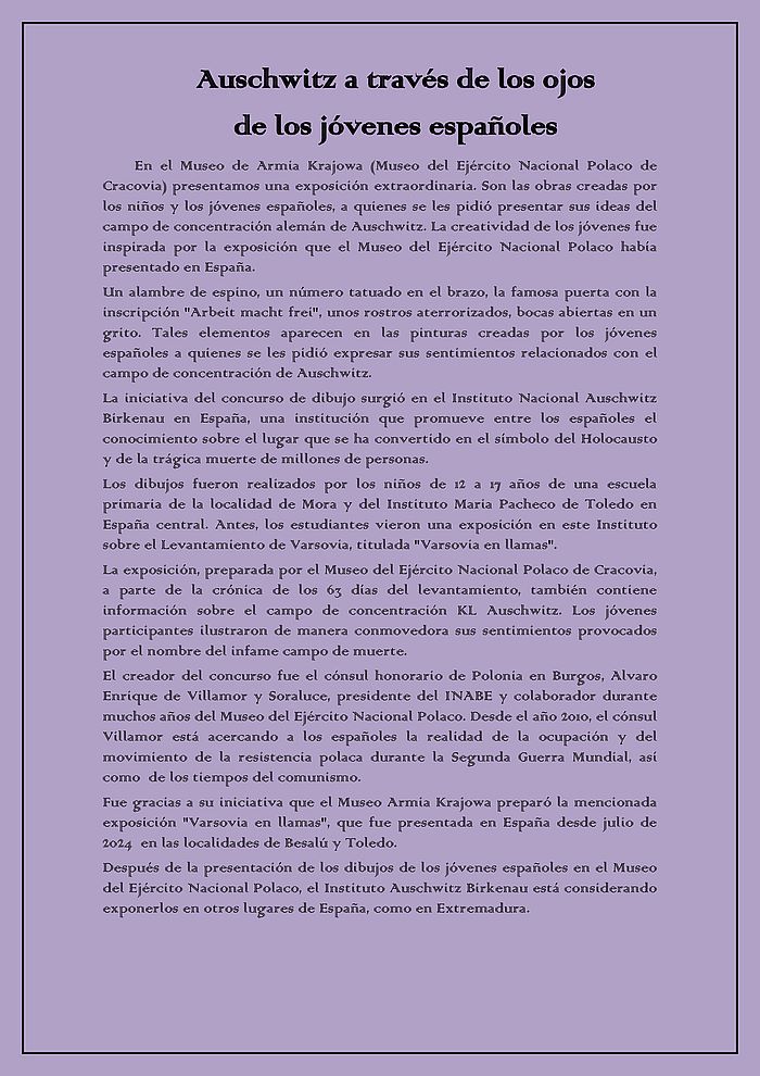 Po prezentacji rysunków młodych Hiszpanów w Muzeum AK Instytut Auschwitz Birkenau rozważa pokazanie ich w innych miejscach w Hiszpanii, np. w Estremadurze.